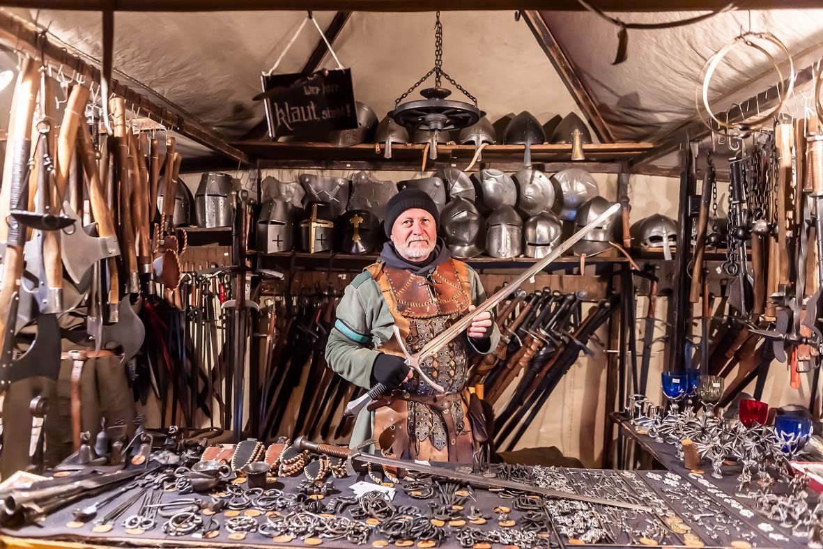 Traditional crafts are very important here. The blacksmith and glassblower work on site, inviting visitors to watch or try their hand at these crafts. The many small stalls attract visitors with unusual goods and provide numerous ideas for small Christmas gifts. Professional manufacturers and hobby artists offer jewelry, ceramic products, wood art, and Christmas decorations such as candles and lanterns.