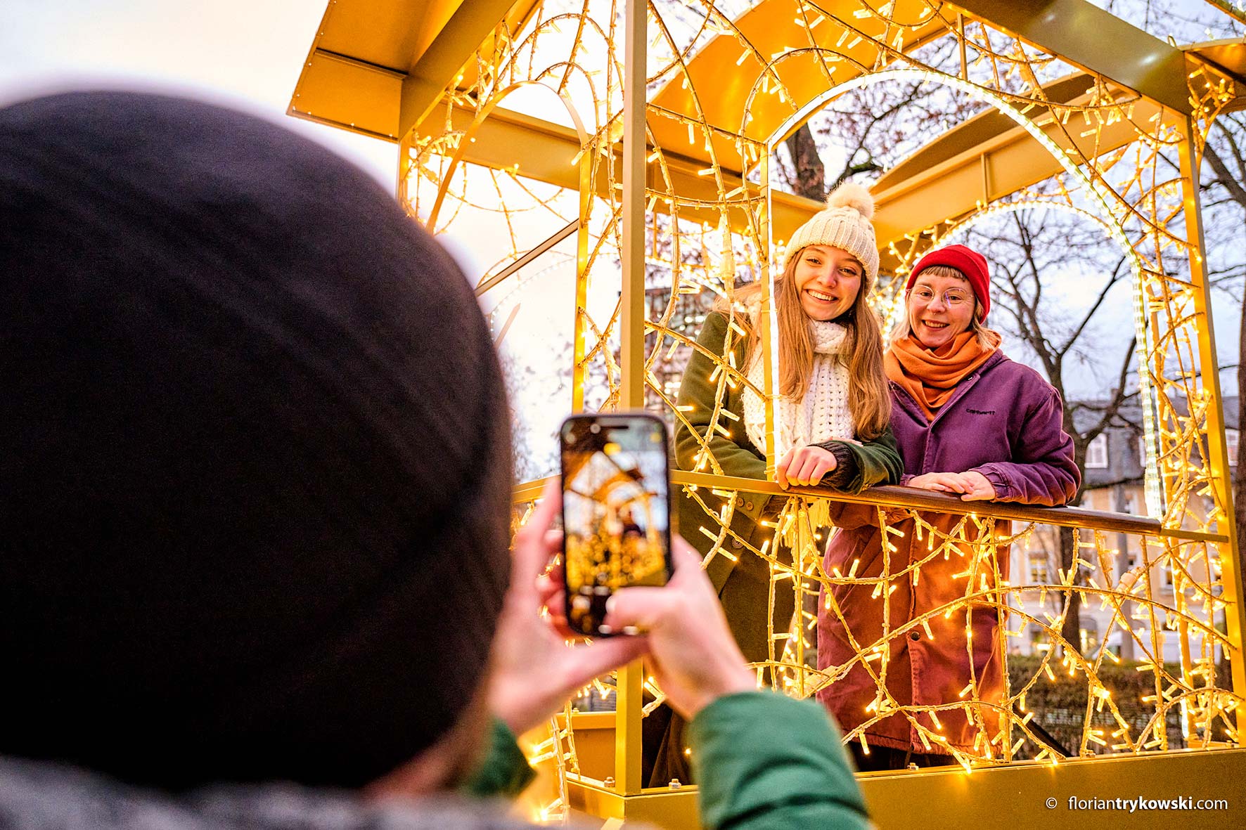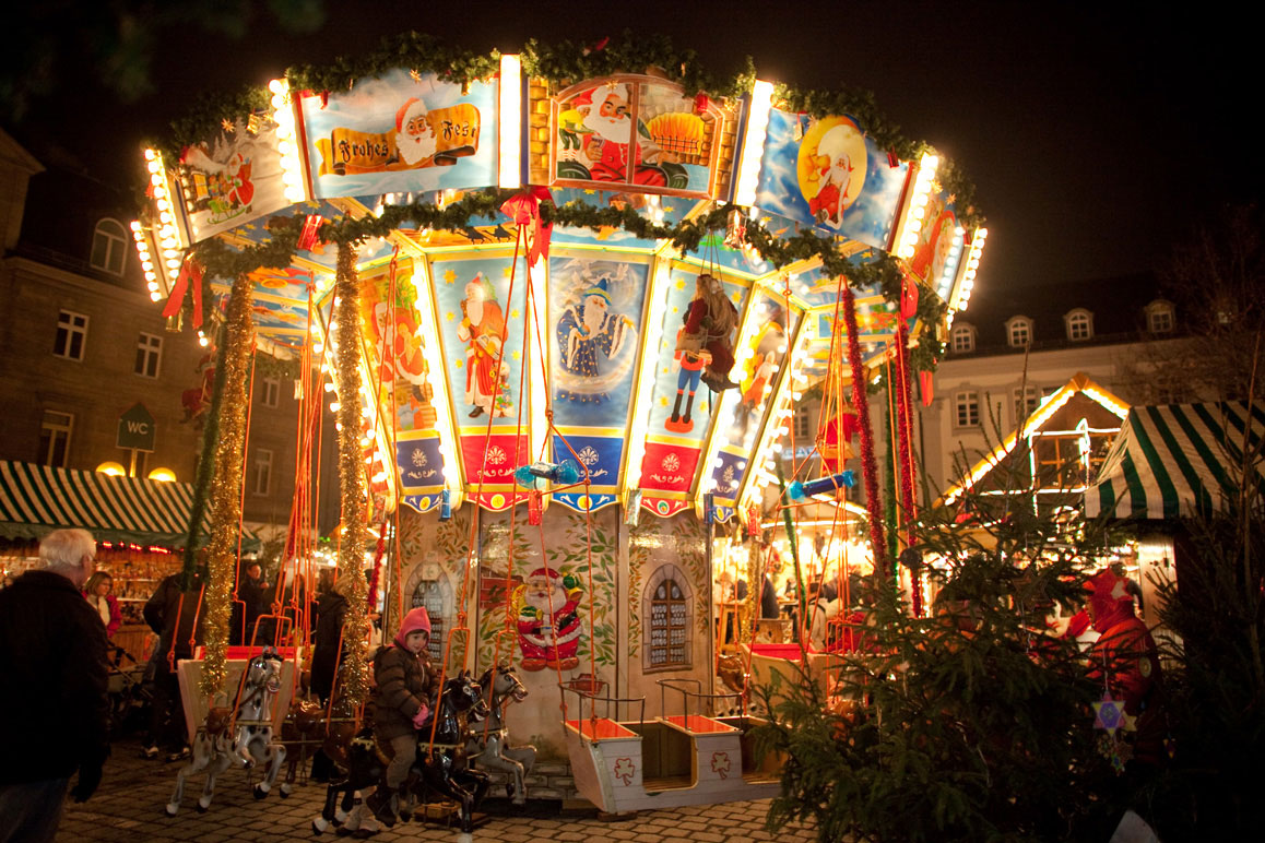 Both the culinary offerings and the many original gift ideas are sure to delight. Children will enjoy the rustic chain carousel, the small train ride, and the friendly, smiling Santa Claus who speaks at the push of a button. Choirs and music groups create a festive atmosphere. Just a few steps across the Fürther Markt will bring you directly to the impressive Christmas Pyramid at the Dr. Konrad-Adenauer-Anlage, where delicious hot drinks warm cold hands.