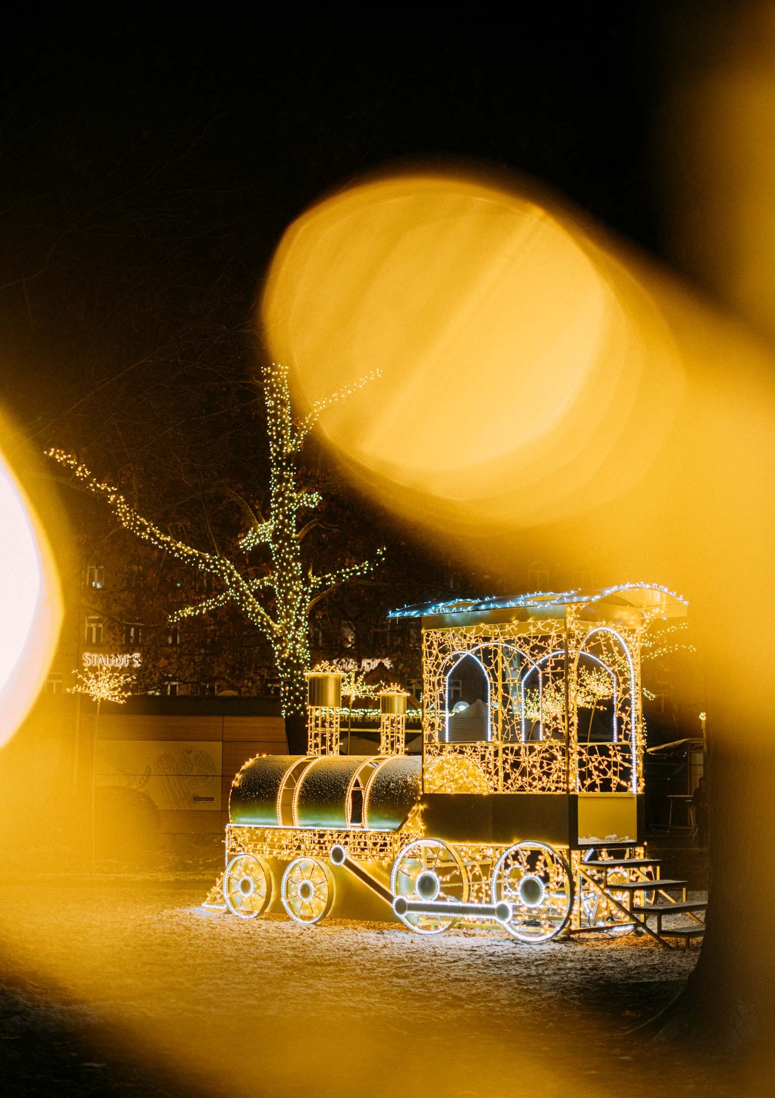 After a few steps across the Fürth Market, you will find yourself standing directly in front of the impressive Christmas Pyramid at the Dr. Konrad-Adenauer-Anlage. In addition to the atmospheric lighting concept with highlights such as the illuminated railway, the 14-meter-high Christmas Pyramid is an absolute eye-catcher. Here, too, delicious hot drinks invite you to warm your cold hands and enjoy the moment.