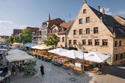 After so many impressions, it’s time for some refreshments! Gustavstraße is not only the heart of the Old Town, but also one of the best places in Fürth to experience authentic Franconian cuisine. Numerous restaurants and taverns invite you to linger—whether you fancy Schäufele (roast pork shoulder), hearty Bratwurst, or seasonal specialties, you’ll find several places here that serve traditional Franconian delicacies.